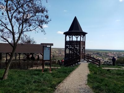 Taras widokowy na wzgórzu z pięknym widokiem na wioskę.